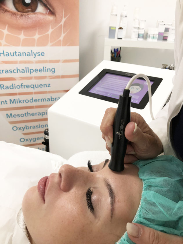 Diese Funktion bestimmt die Höhe der Hautfeuchtigkeit und wurde für eine korrekte Diagnostik der Haut zur Auswahl der angemessenen Pflegeprodukte entwickelt. Es wird an sechs Punkten gemessen. Das Ergebnis wird in Prozent angegeben, unter Berücksichtigung des Alters des Kunden.