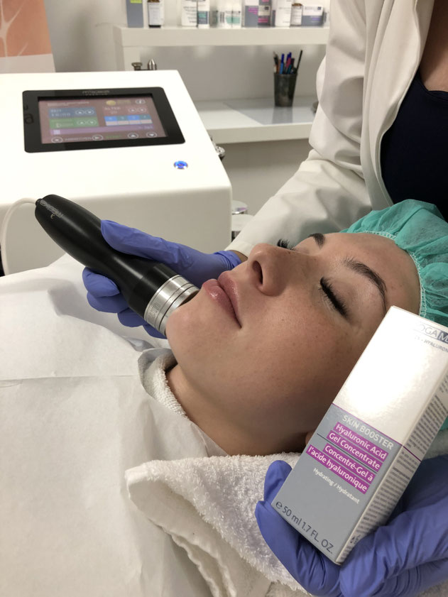 Radiowellen sind in der Kosmetik mit eine der effektivsten Methoden zum Lifting der Haut im Gesicht und am Körper. Das Gerät emittiert Radiowellen, die aus hohen Stromfrequenzen enstehen. Die elektrische Energie wird in elektromagnetische Energie umgewandelt, die dann in das Gewebe eintritt und durch die Anregung von lonen dieses erwärmt. Dadurch werden Kollagenfasern wieder aktiviert und die körpereigenen, regenerativen Prozesse wie Hyaluron- und Kollagenproduktion angeregt.
